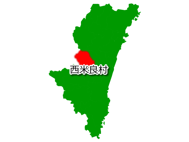 宮崎県西米良村を示す画像を元に、目的地案内や出身地説明、ルート案内や学習コンテンツなどにご活用ください。