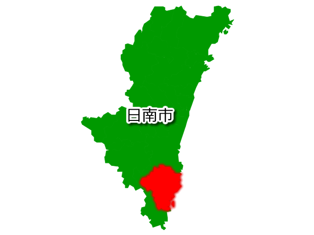 宮崎県日南市(にちなんし)の場所を示す画像です。PNG透明形式ファイルです。