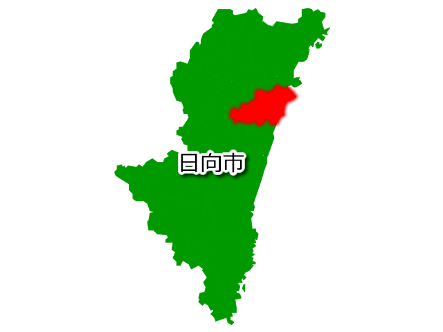 宮崎県日向市を示す画像を元に、目的地案内や出身地説明、ルート案内や学習コンテンツなどにご活用ください。