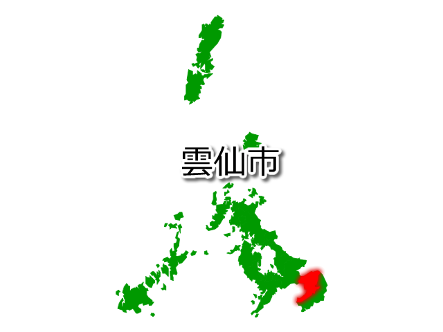 長崎県雲仙市を示す画像を元に、目的地案内や出身地説明、ルート案内や学習コンテンツなどにご活用ください。