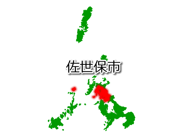 長崎県佐世保市を示す画像を元に、目的地案内や出身地説明、ルート案内や学習コンテンツなどにご活用ください。
