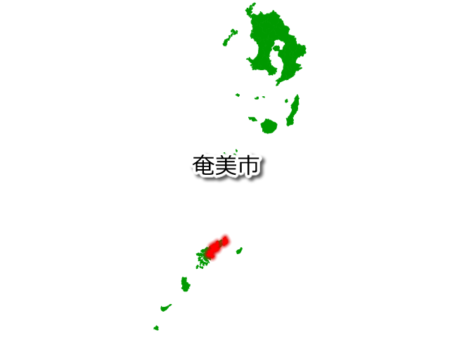 鹿児島県奄美市を示す画像を元に、目的地案内や出身地説明、ルート案内や学習コンテンツなどにご活用ください。