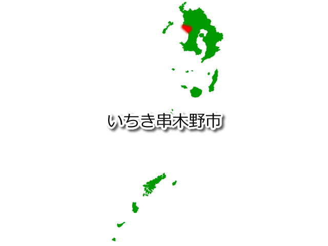 鹿児島県いちき串木野市を示す画像を元に、目的地案内や出身地説明、ルート案内や学習コンテンツなどにご活用ください。