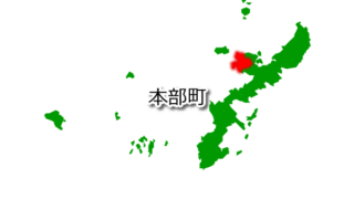 沖縄県 沖縄県本部町(もとぶちょう)の場所画像 沖縄県本部町(もとぶちょう)の場所を、矢印などの記号を用いて分かりやすく示した画像です。背景を透過したPNG形式で作成しています。 2026.02.22 沖縄県